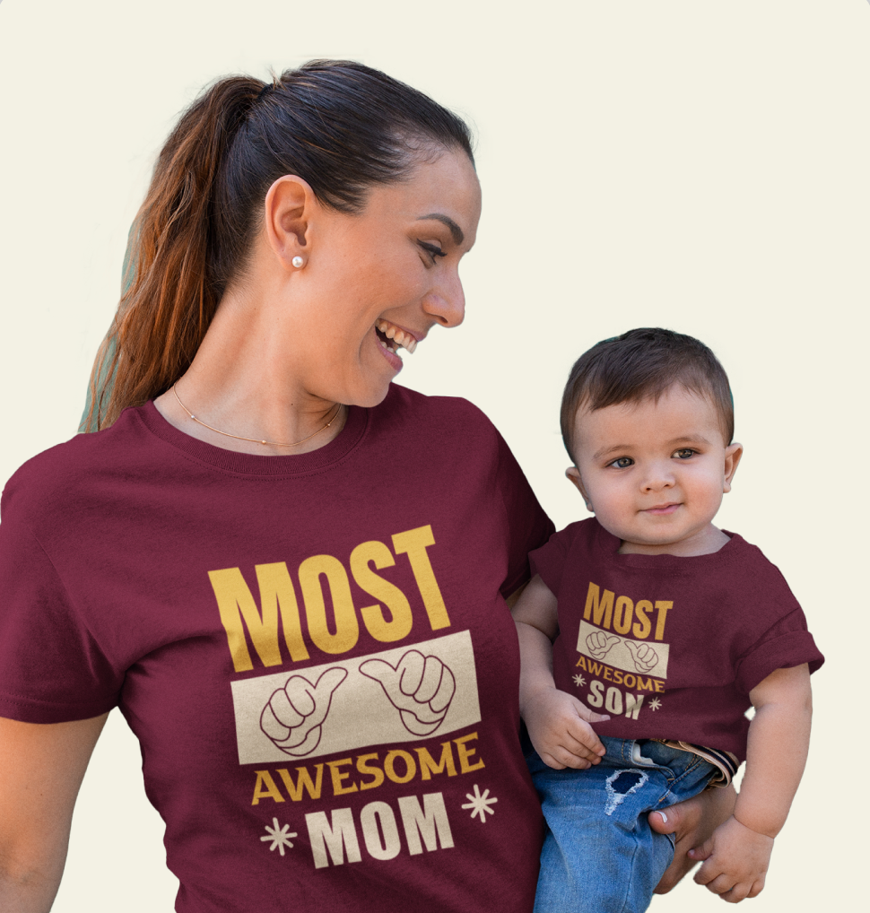 Awesome Mom and Son Unisex Half Sleeve T-Shirts (Pack of 2)