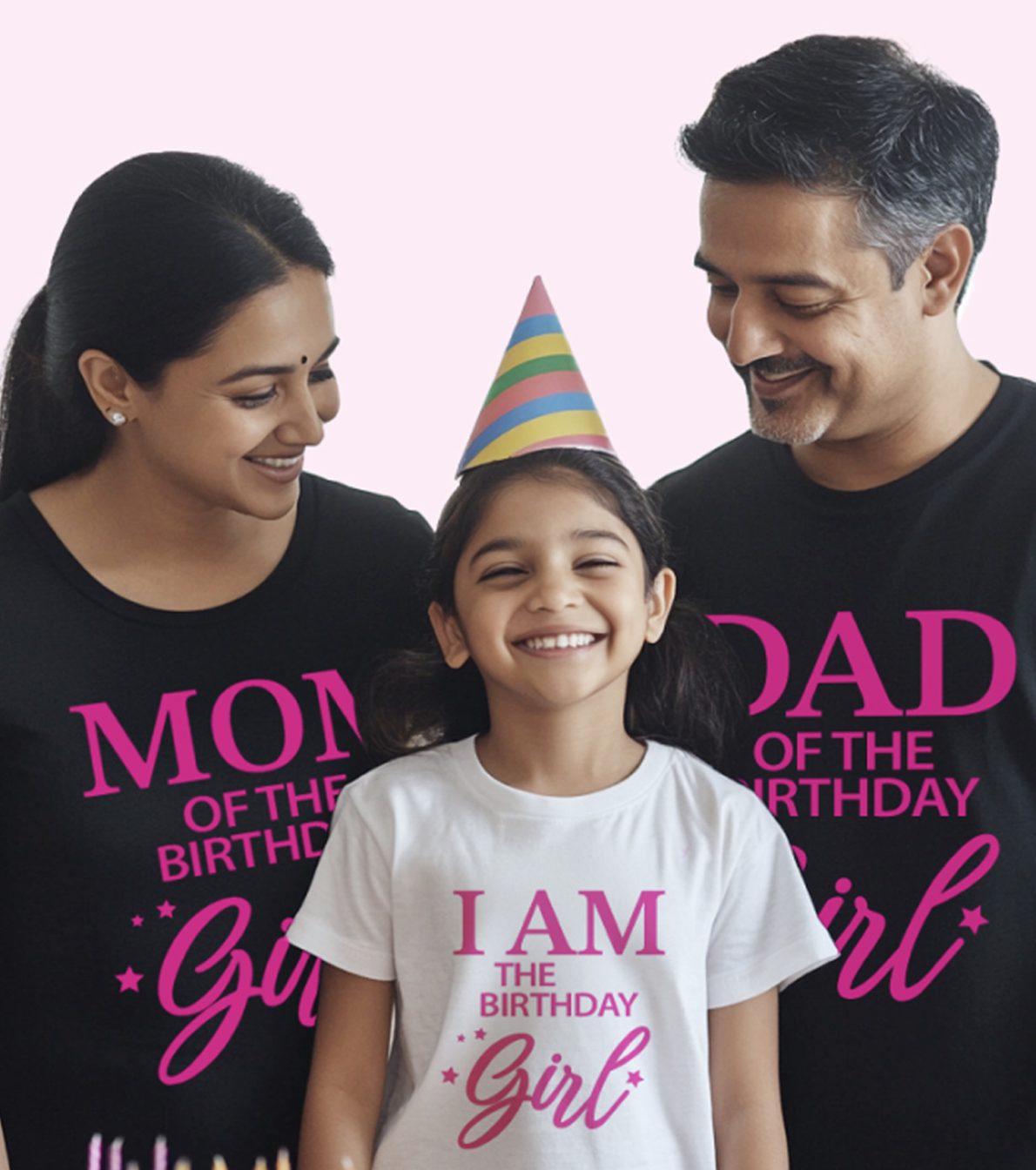 Dad, Mom, Birthday Girl Unisex Half Sleeve T-Shirts (Pack of 3)